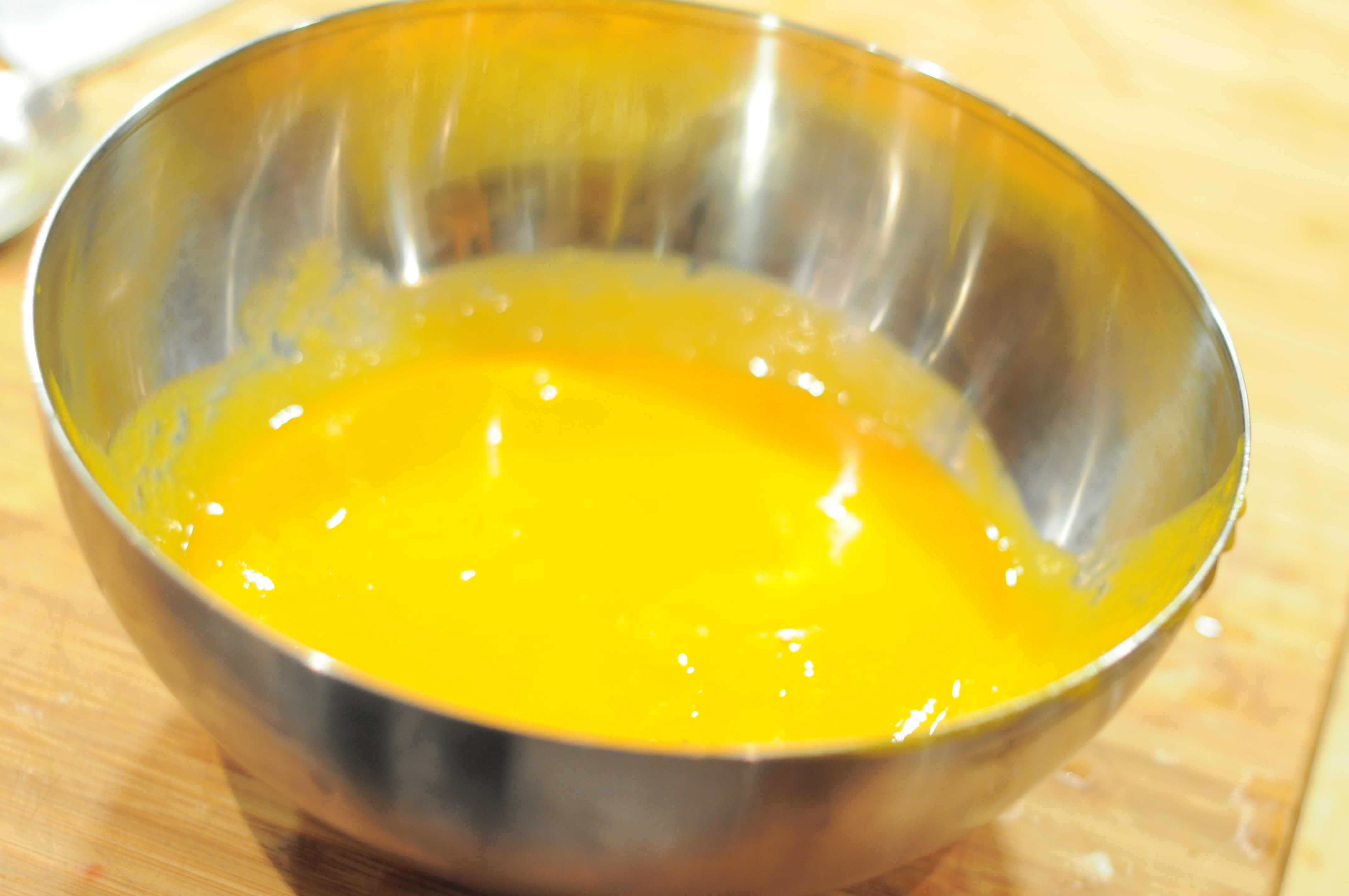 - Kok opp mango juicen og tilsett agar agar mens du kjører væsken med stavmikser.