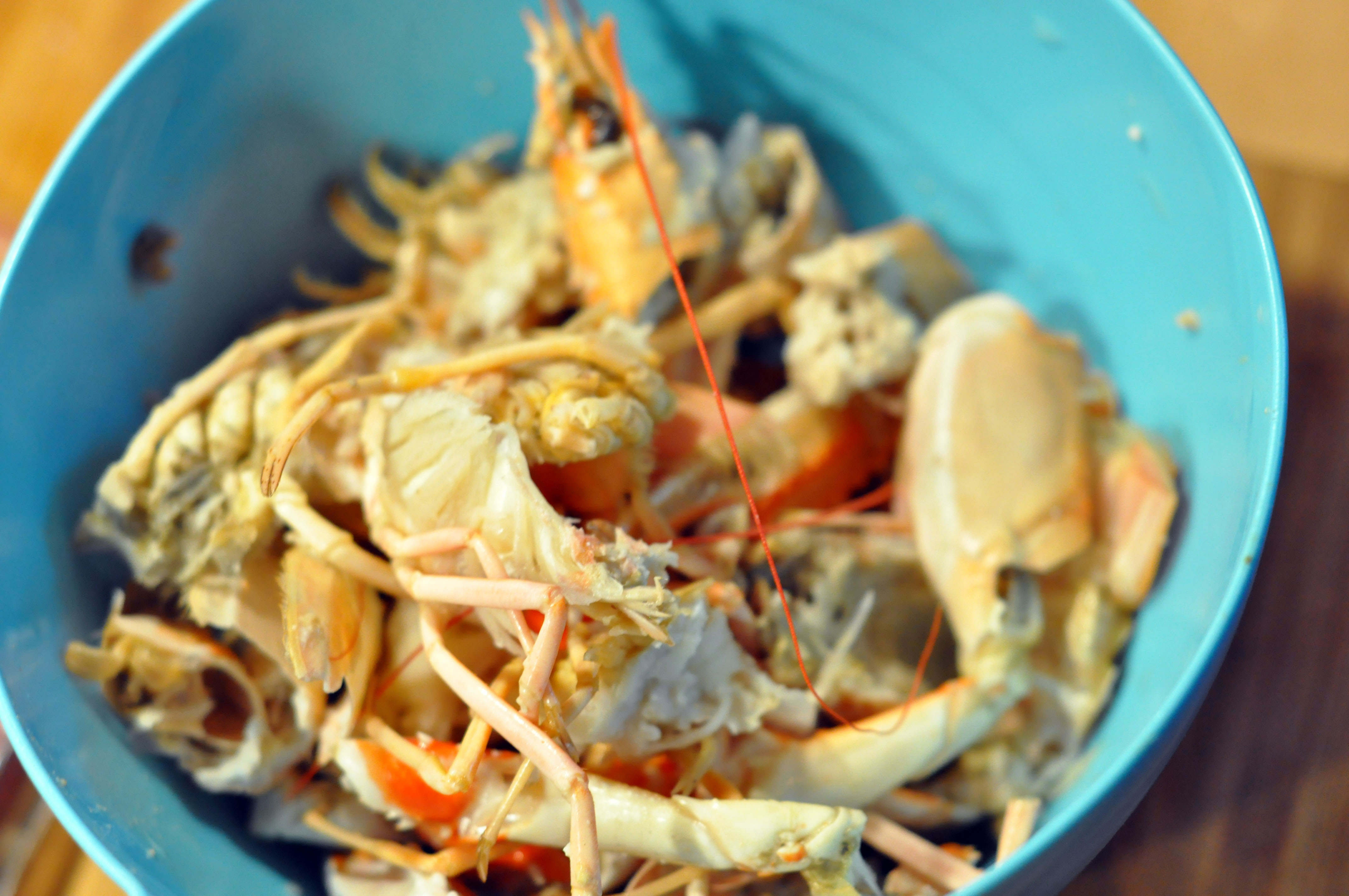 Det var ikke greit å få tak i levende, eller ukokt sjøkreps, så det var ferdig kokte som ble benyttet her. Neste gang forsøker jeg meg på helt ferske levende tror jeg.