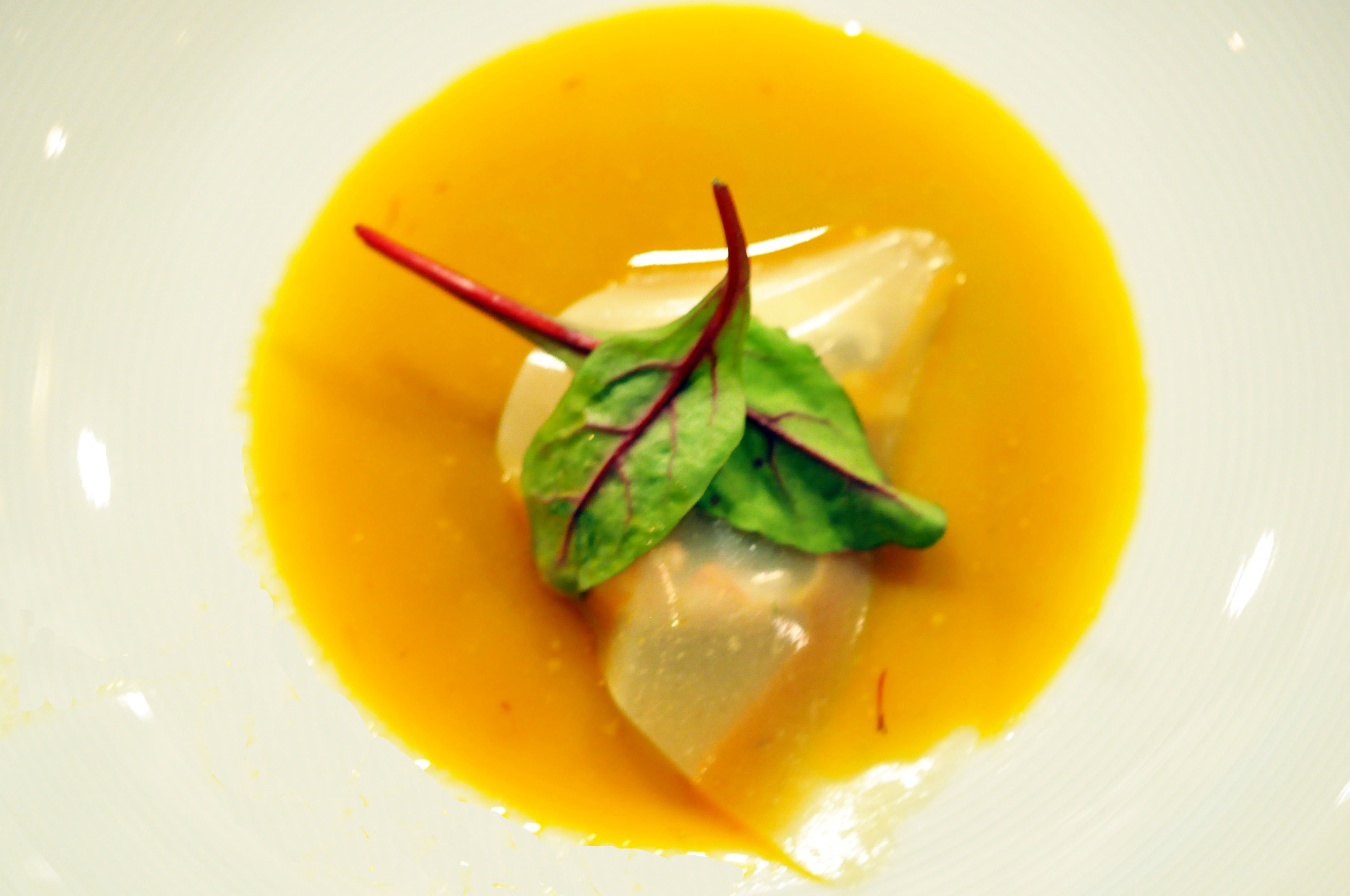 - Når kraften er klar, siler du av væsken heller væsken i en kaserolle, kok inn til du har igjen ca 1/4 eller noe av kraften og jevner den med smør helt til slutt. Smak til med salt, pepper og sitron og noen tråder safran som setter fin enkel smak og fin farge.Forslag til plassering: