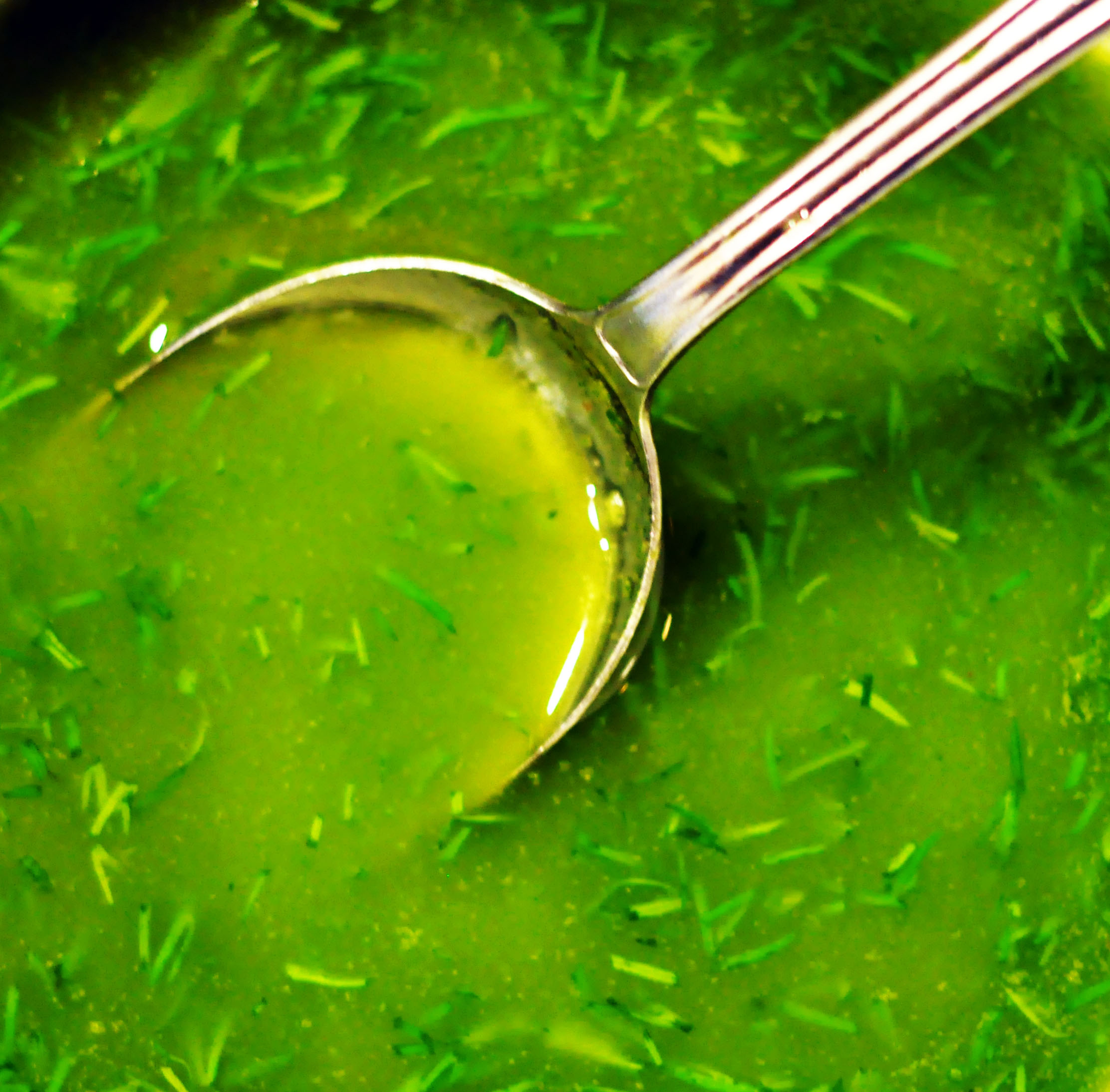 - For dilloljen, kutter du løst opp dillen, legg i en blender, kjør raskt med olje og la stå. Sil av helt til slutt.