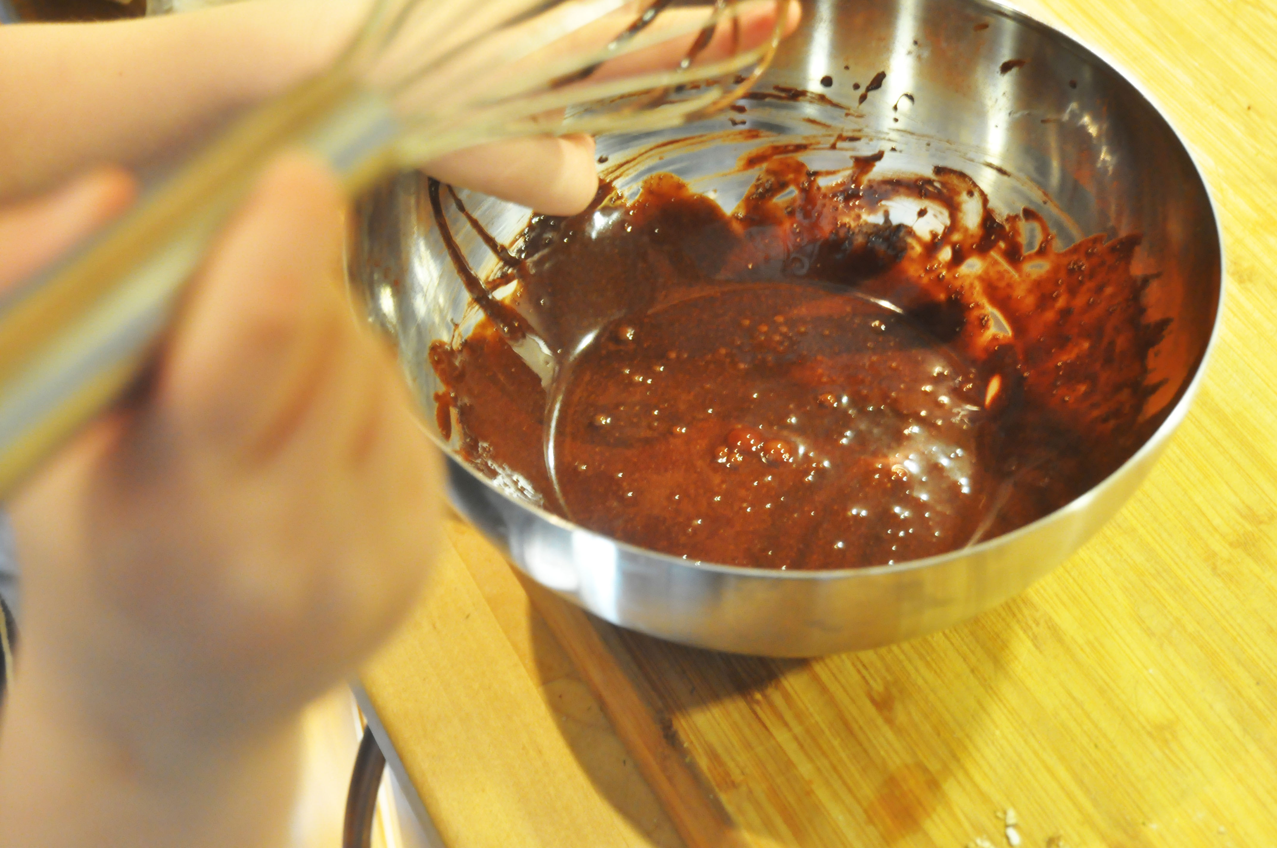 4. Kaken som du får ut ser mørk og skikkelig gooey ut.