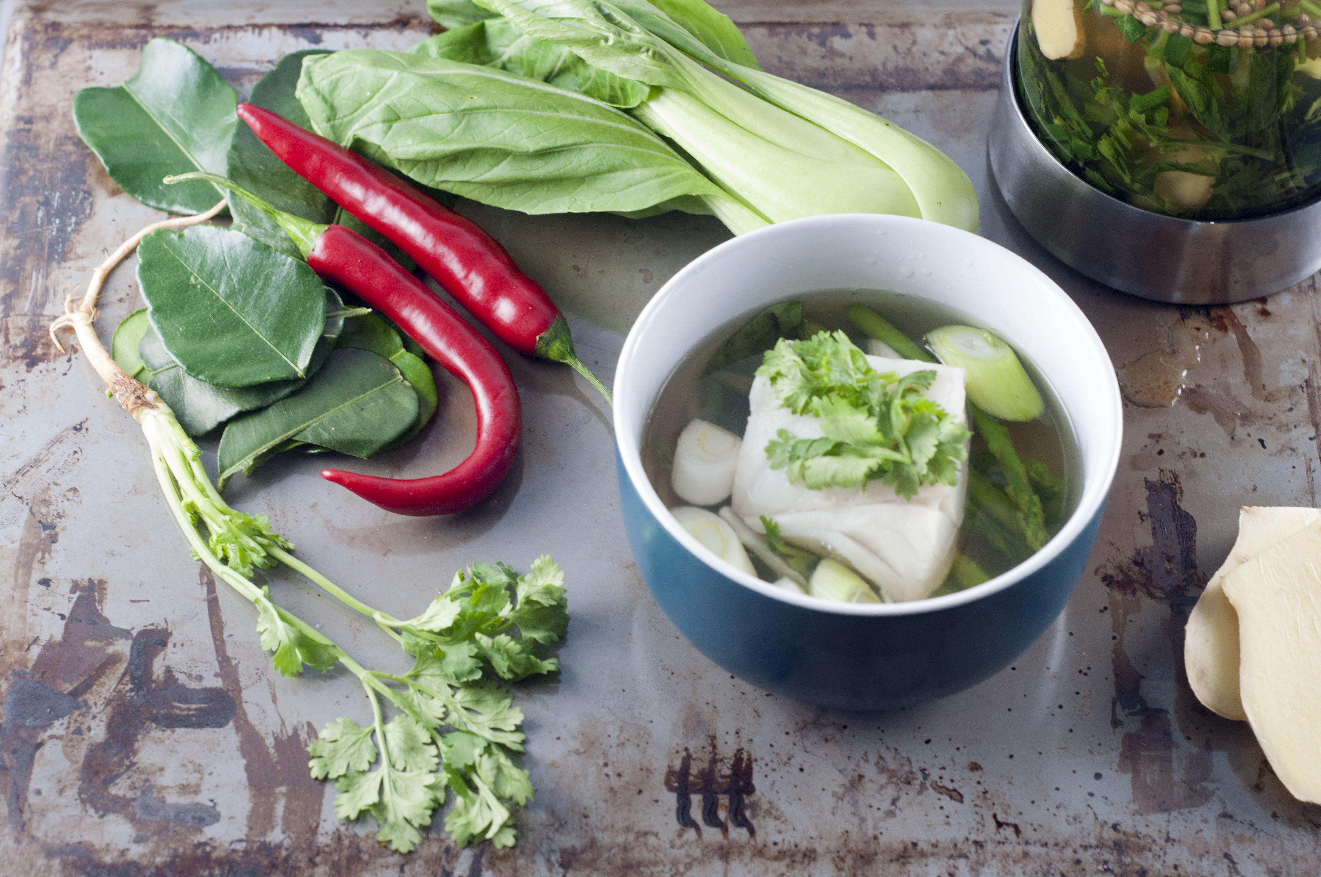 Torsk eller annen hvit fisk passer forøvrig utmerket til dette, og suppler med litt asiatiske grønnsaker og middagen er i boks.