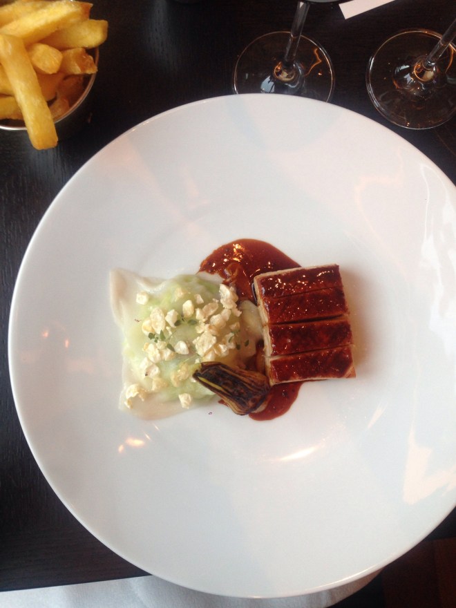 Pork belly med kål og Robert saus. Jeg lat aldri en sjanse til pork belly gå fra meg gitt:) som siderett de berømte triple cooked fries 🙂 yum indeed!