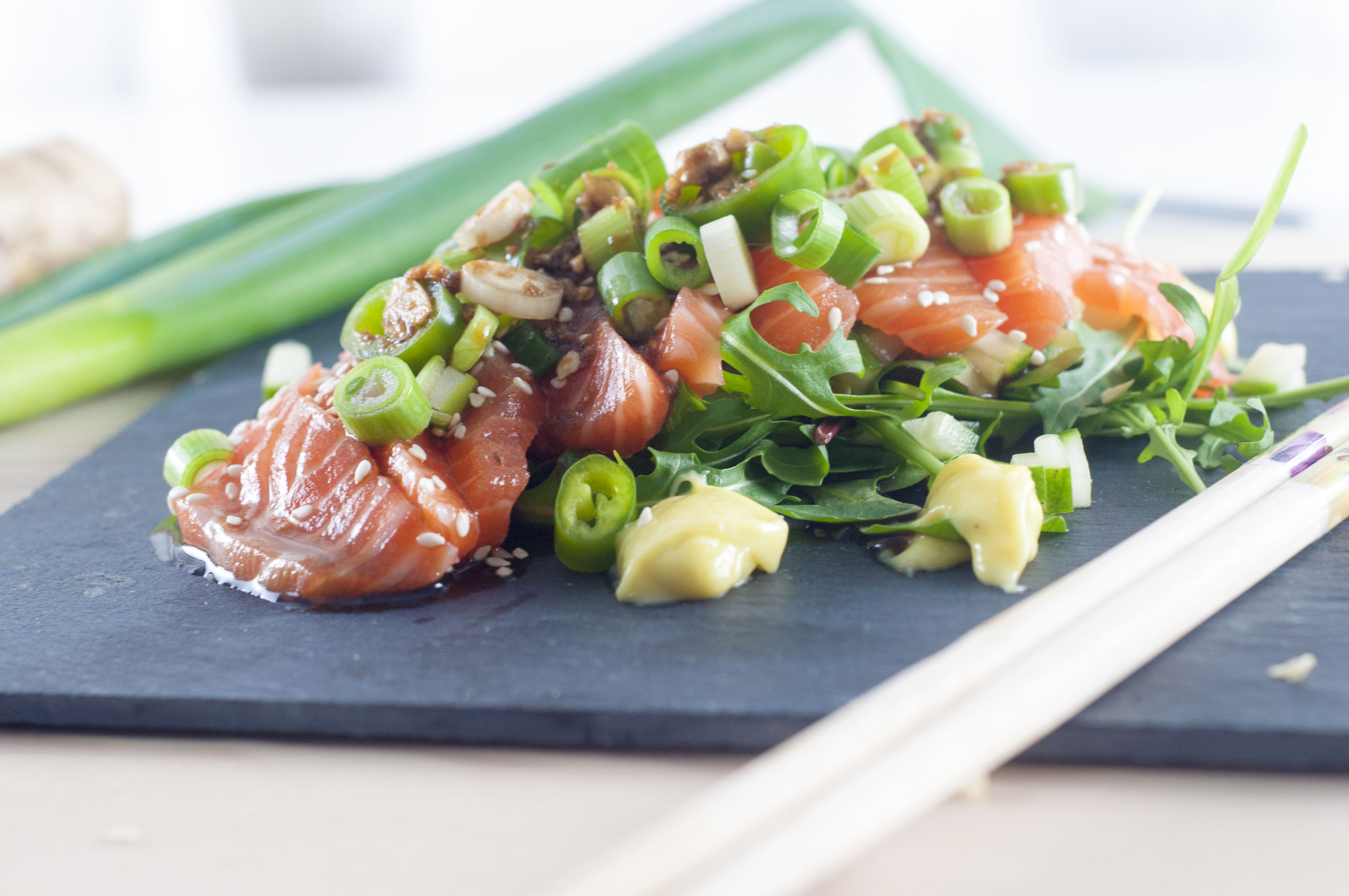 Previous ImageNext Image sashimisalat med hjemmelaget ponzusaus og wasabimajones (44) Del dette: Send en lenke på e-post til en venn(åpnes i en ny fane) E-post Tweet Skriv ut(åpnes i en ny fane) Skriv ut Lik Laster inn...